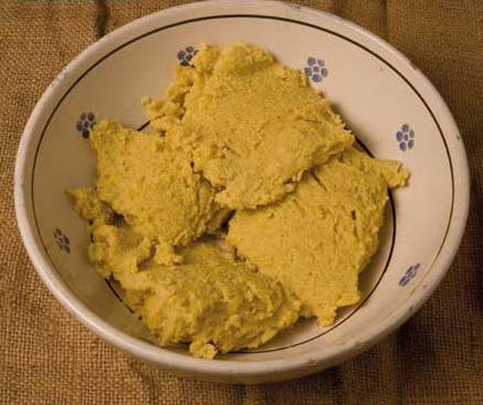 La polenta si presenta di colore giallo vivo, soffice e senza grumi.